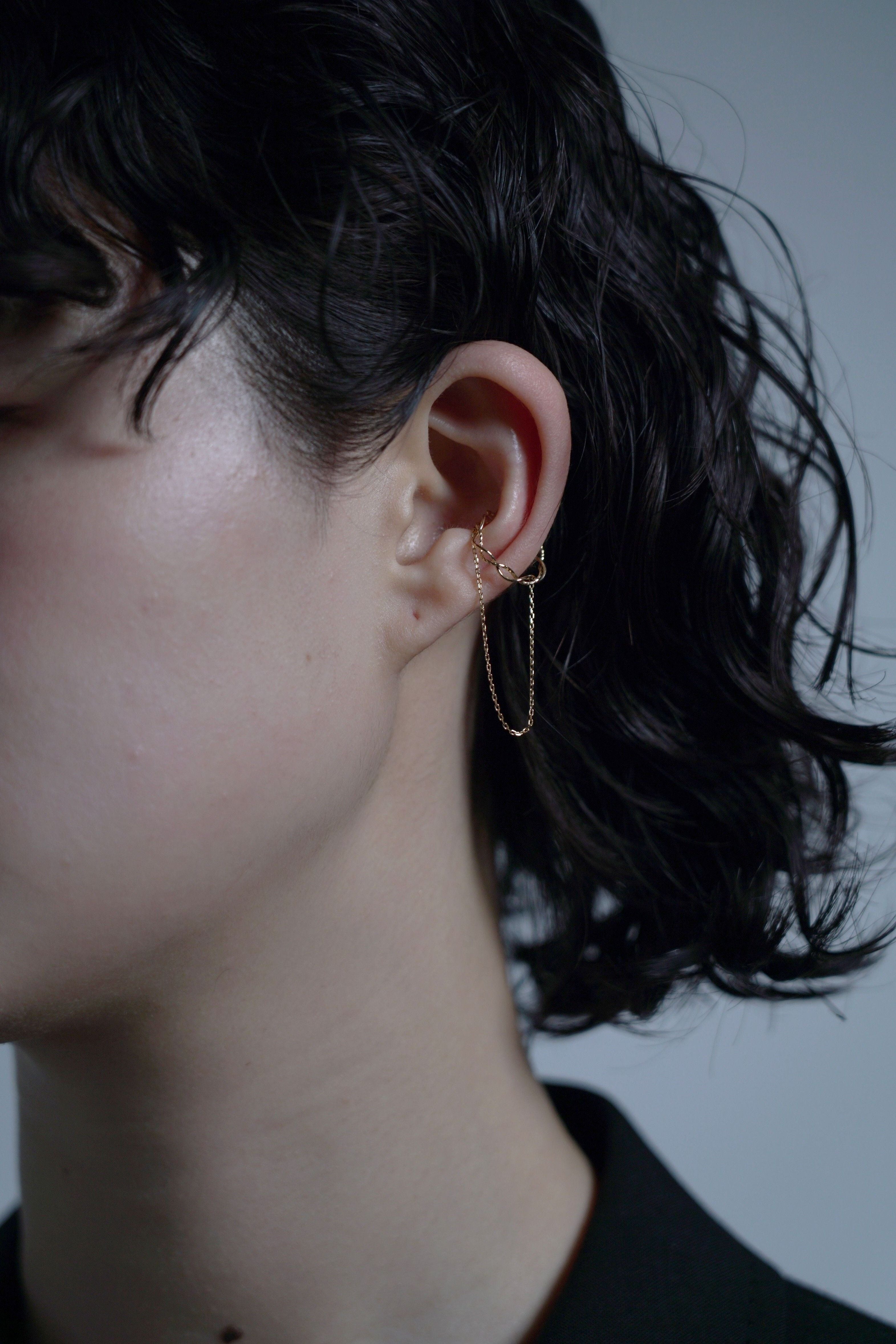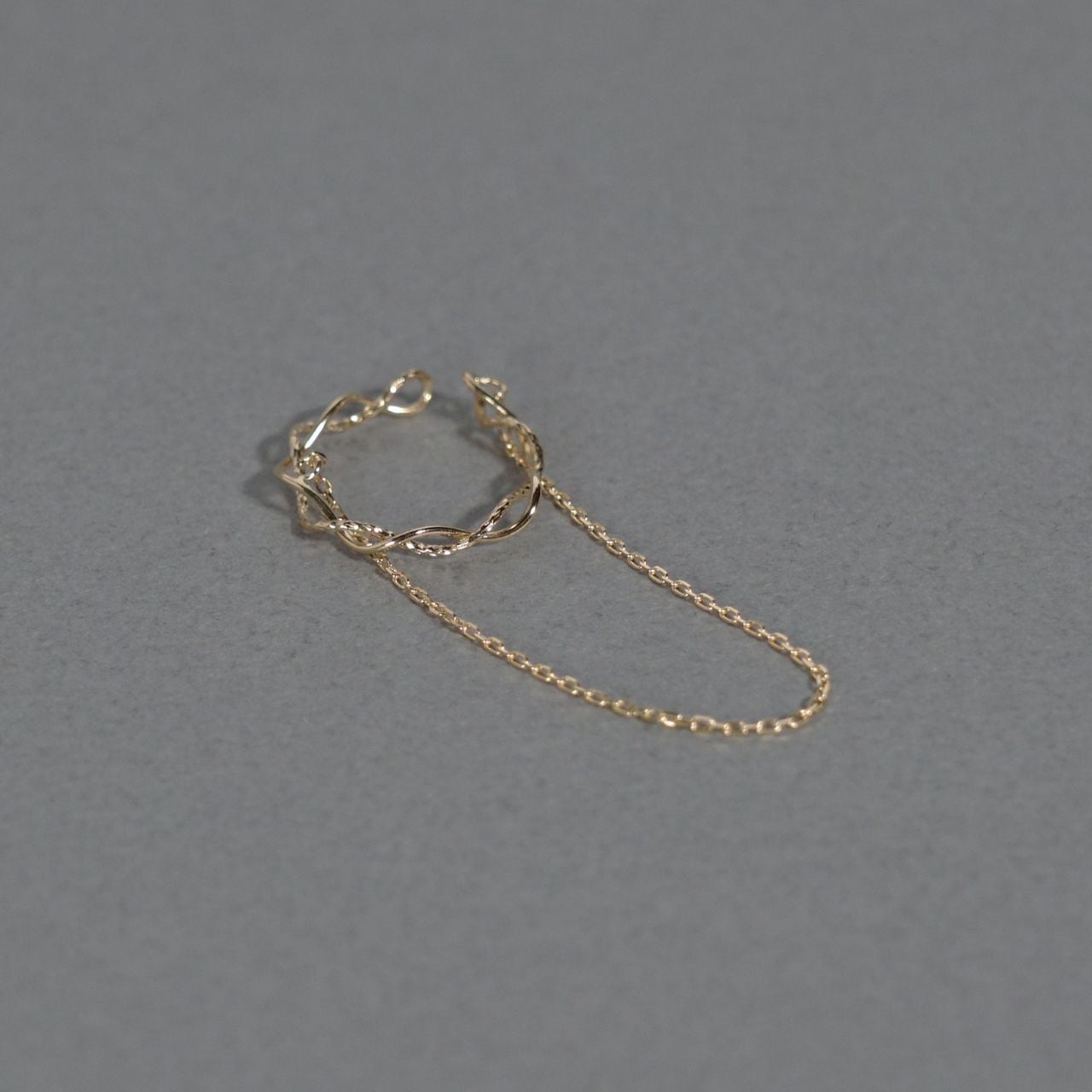 K18 チェーン付き ツイストイヤーカフ(片耳用)。