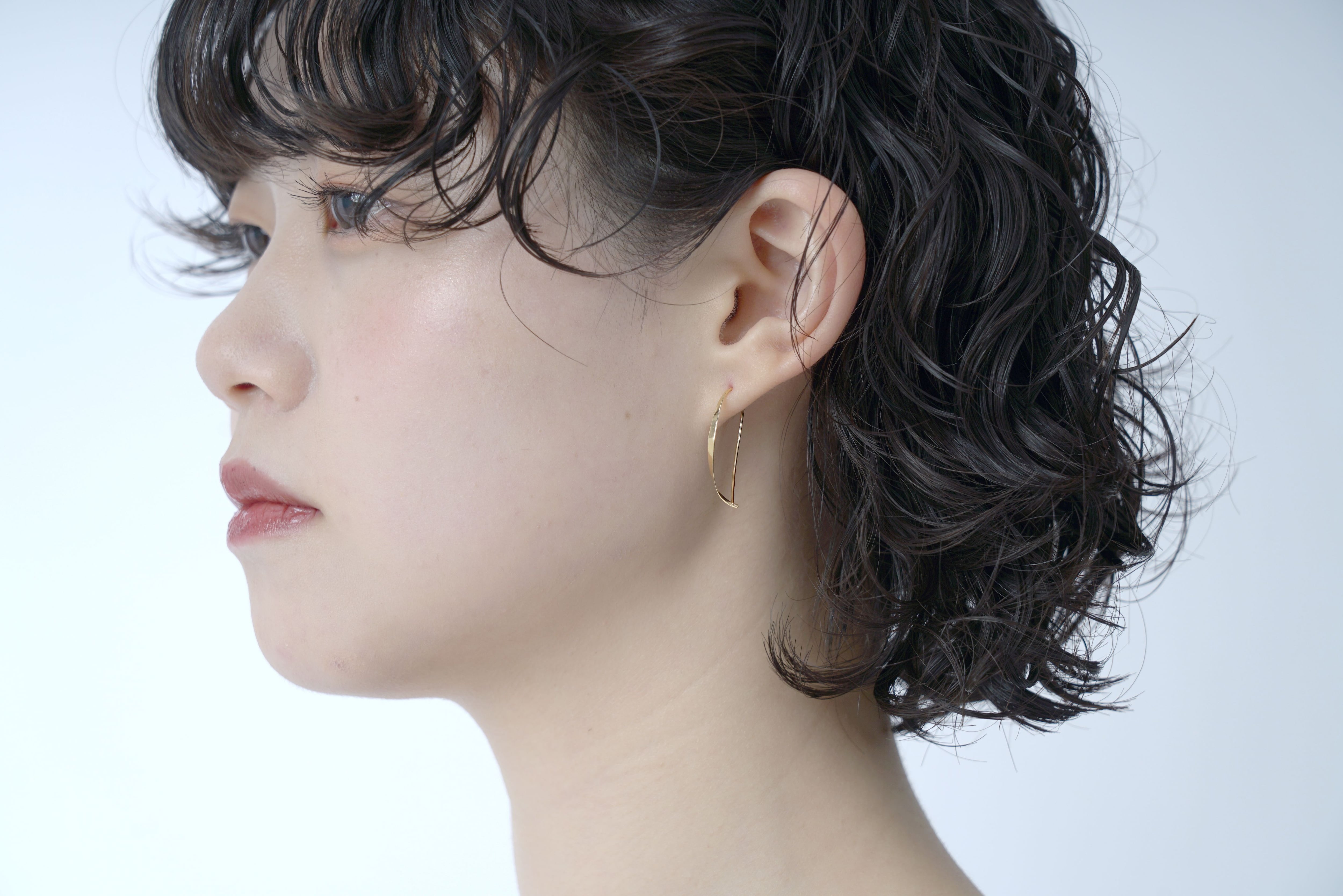 カーブラインは、顔周りを優しく彩り、さりげなく美しさを引き立てます。上質なゴールドの輝きは、自信を持ってあなたの日常を彩るアイテムとなることでしょう。