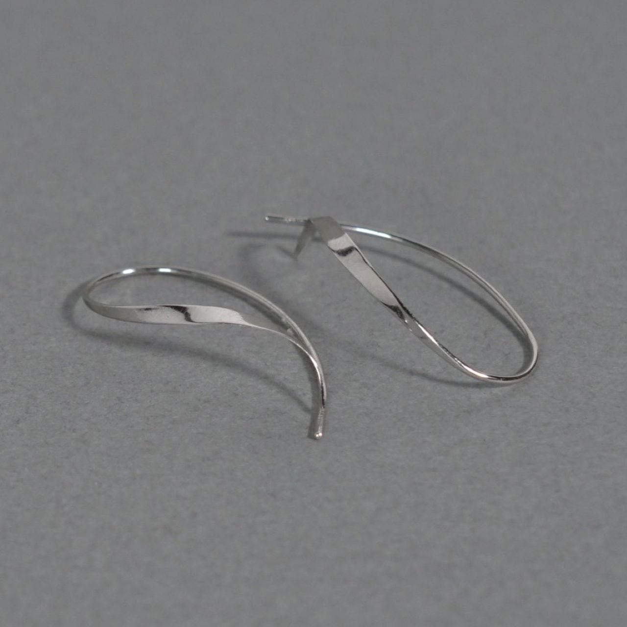 ゆるやかなカーブラインが描くPt900のフックピアスは、凛とした輝きと落ち着いた重みが耳元に静かな存在感をもたらします。