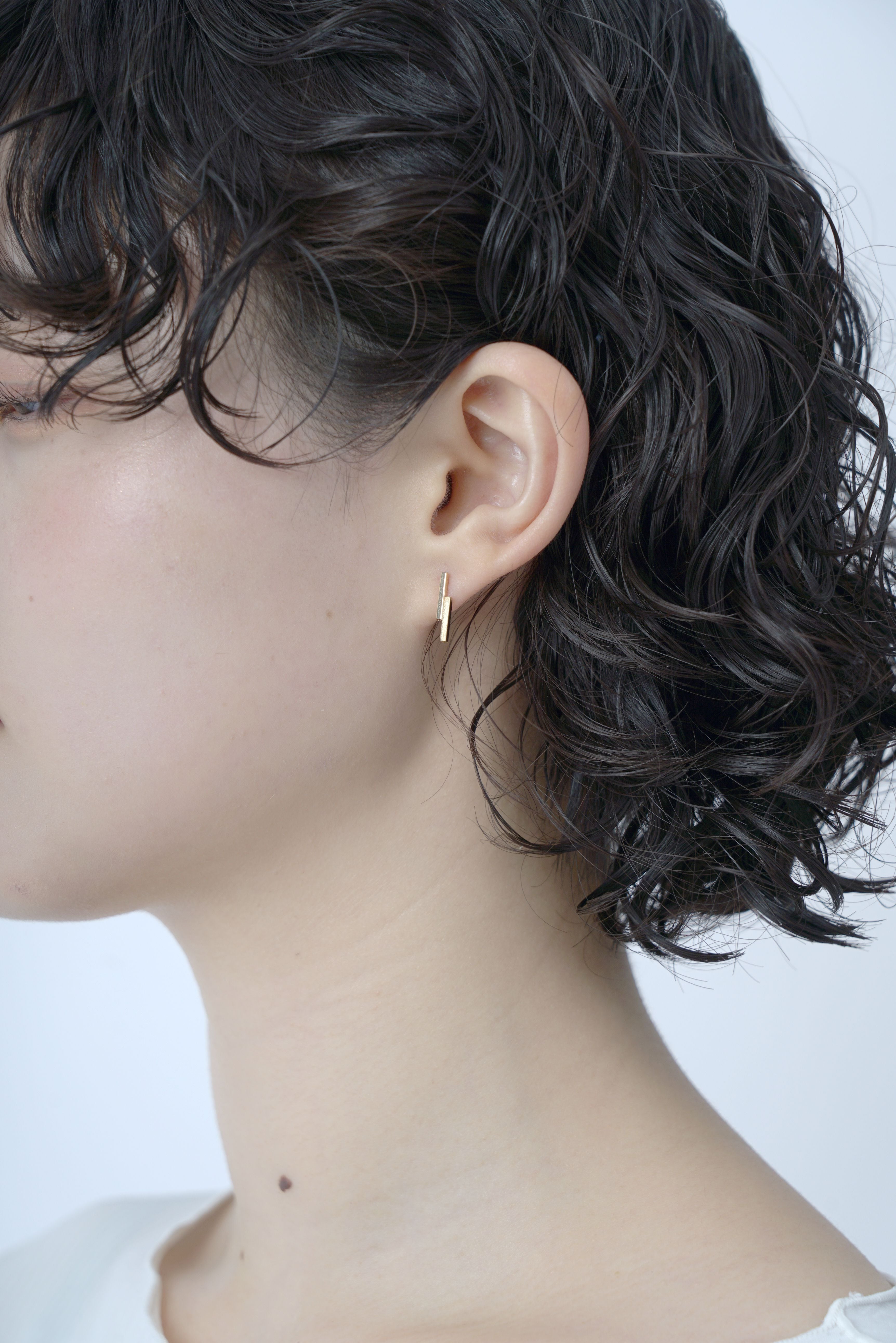 鏡面仕上げのバーとマット加工のバーを段違いに配置したK18イエローゴールドのこのピアスは、シンプルでありながら、上品で奥行きのある輝きを放ちます。